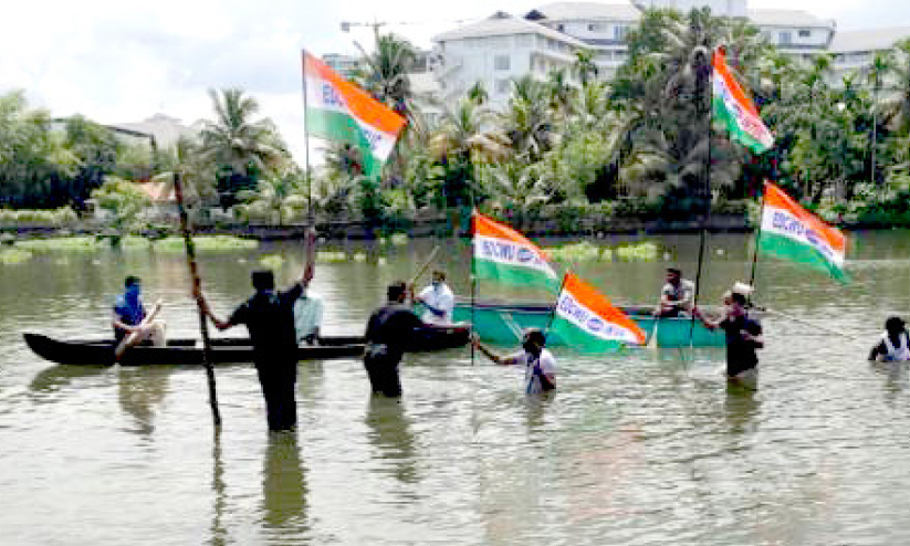 മാലിന്യനീക്കം: കായലിൽ നിൽപ് സമരം നടത്തി