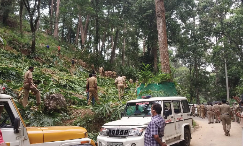 പ്ലാമലയിൽ വനം വകുപ്പ് 20 ഏക്കറിലെ ഏലച്ചെടികൾ വെട്ടി മാറ്റി