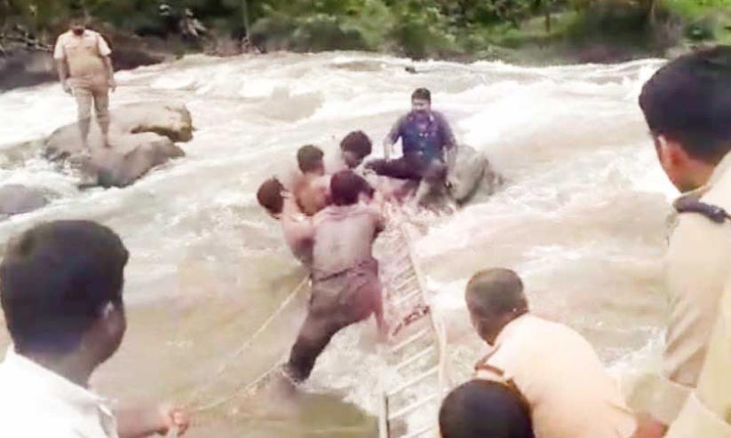ഇതോടെ അഗ്നിരക്ഷ സേനയെ വിവരം അറിയിച്ചു. അരമണിക്കൂറിനുള്ളിൽ അടിമാലിയിൽനിന്ന് സേന എത്തി. പുഴക്ക് കുറുകെ വടം കെട്ടി. കയറിൽ തൂങ്ങി അപകടത്തിൽപെട്ട തൊഴിലാളിയെ സാഹസികമായി ചുമന്ന് കരക്ക് എത്തിച്ചു. പിന്നീട് അടിമാലി താലൂക്ക് ആശുപത്രിയിൽ എത്തിച്ചു.