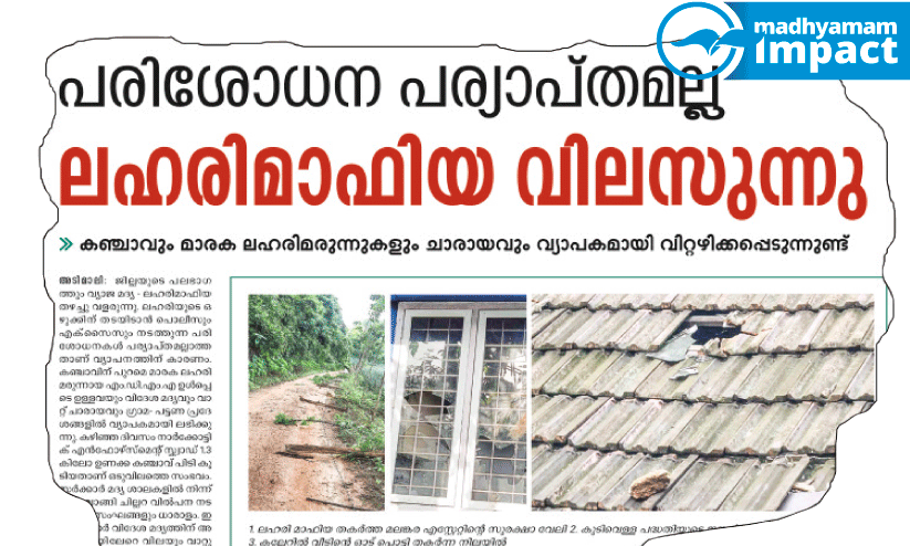ചിലയിടങ്ങളിൽ കുടിൽവ്യവസായം പോലെ ചാരായവാറ്റ് നടക്കുന്നുണ്ട്. പലയിടത്തും ഉദ്യോഗസ്ഥ പിന്തുണയുമുണ്ട്. ചാരായ- കഞ്ചാവ് വിൽപനക്ക് പുറമെ മാരക ലഹരിമരുന്നായ എം.ഡി.എം.എ ഉൾപ്പെടെ ഉള്ളവയും വിദേശമദ്യവും പലയിടത്തും സുലഭമാണ്. വിനോദസഞ്ചാരികൾക്കിടയിലും കൗമാരക്കാരുടെ ഇടയിലുമാണ് എം.ഡി.എം.എ പോലുള്ള ലഹരിവസ്തുക്കൾ ഉപയോഗിക്കുന്നത്. ഒരുമാസത്തിനിടെ ജില്ലയിൽ നാലിടങ്ങളിൽ കഞ്ചാവ് ചെടികൾ കണ്ടെത്തി കേസെടുത്തു. രണ്ടുദിവസം മുമ്പ് 1.3 കിലോ ഉണക്ക കഞ്ചാവും പിടികൂടി.