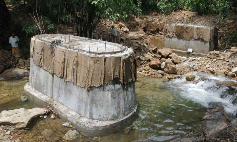 വനം വകുപ്പാണ് തടസ്സവാദവുമായി എത്തിയത്. ഇതോടെ പാലം പണിനിർത്തി കരാറുകാരൻ മടങ്ങി. പിന്നീട് രണ്ടു വർഷമായി നാട്ടുകാർ കലക്ടറേറ്റിലും ഡി.എഫ്.ഒ ഓഫിസിലും കയറിയിറങ്ങിയാണ് തടസ്സങ്ങൾ നിക്കിയത്. ഇതോടെ പണി പുനരാരംഭിക്കാൻ നടപടിയായി.