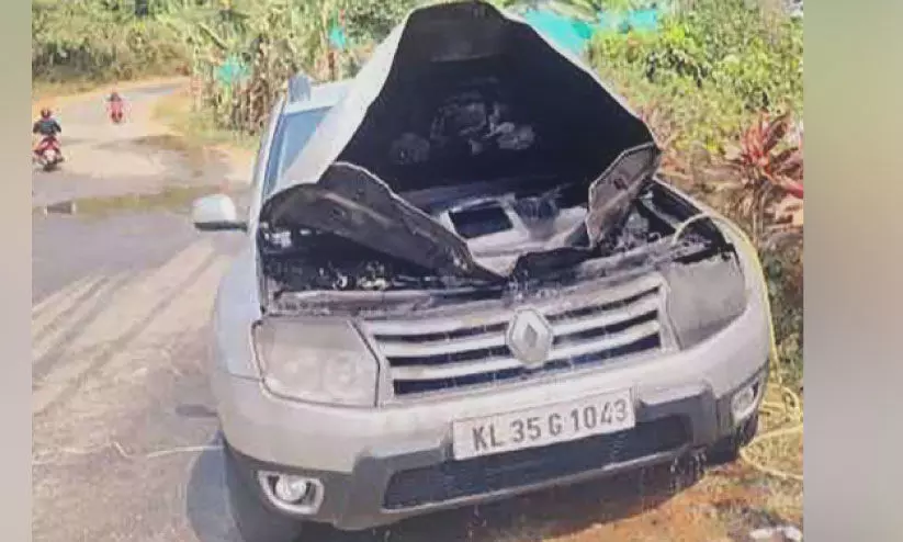 ഓടുന്നതിനിടെ തീ പിടിച്ച കാർ