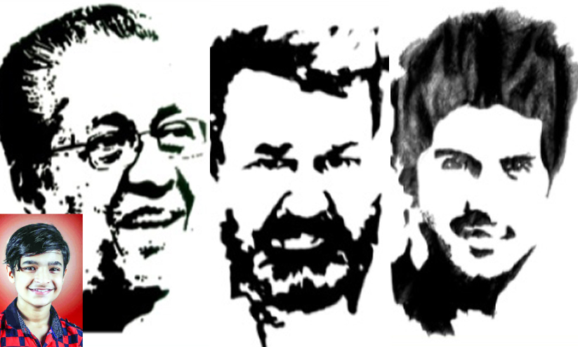 മുഖ്യമന്ത്രി പിണറായി വിജയന്, വൈദ്യുതിമന്ത്രി എം.എം. മണി, പ്രതിപക്ഷ നേതാവ് രമേശ് ചെന്നിത്തല, മുന് മുഖ്യമന്ത്രി ഉമ്മന് ചാണ്ടി, സിനിമതാരങ്ങളായ മോഹന്ലാല്, മമ്മൂട്ടി, ഗായകന് യേശുദാസ് തുടങ്ങി രാഷ്ട്രീയ, സാമൂഹിക ചലച്ചിത്രരംഗങ്ങളിലെ നൂറില്പരം ആളുകളുടെ ചിത്രങ്ങളാണ് അസാധാരണ തനിമയോടെ ഈ 11കാരന് കടലാസുതാളുകളില് പകര്ത്തിയത്.