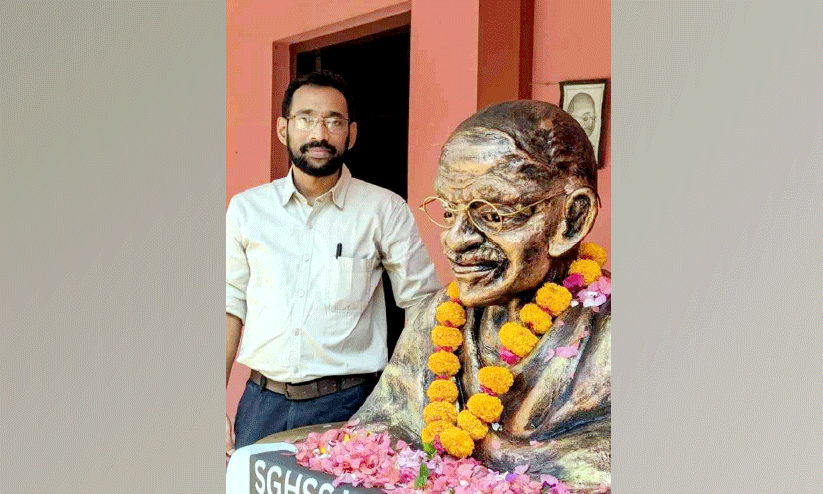ചെറുതോണി: ദേശീയ രക്തസാക്ഷിത്വ ദിനത്തിൽ ഗാന്ധി ശിൽപം നിർമിച്ച് കലാധ്യാപകൻ ശ്രദ്ധേയനാവുന്നു. വാഴത്തോപ്പ് സെന്റ് ജോർജ് ഹൈസ്കൂളിലെ കലാധ്യാപകനായ മുരിക്കാശേരി സ്വദേശി മുതുപ്ലാക്കൽ സോജൻ ജോസഫാണ് മഹാത്മാവിന്റെ പ്രതിമ സിമന്റിൽ നിർമിച്ചത്.
