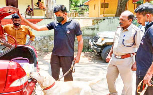 മറയൂർ-ചിന്നാർ അതിർത്തിയിൽ ഡോഗ് സ്ക്വാഡ് വാഹനങ്ങൾ പരിശോധിക്കുന്നു
