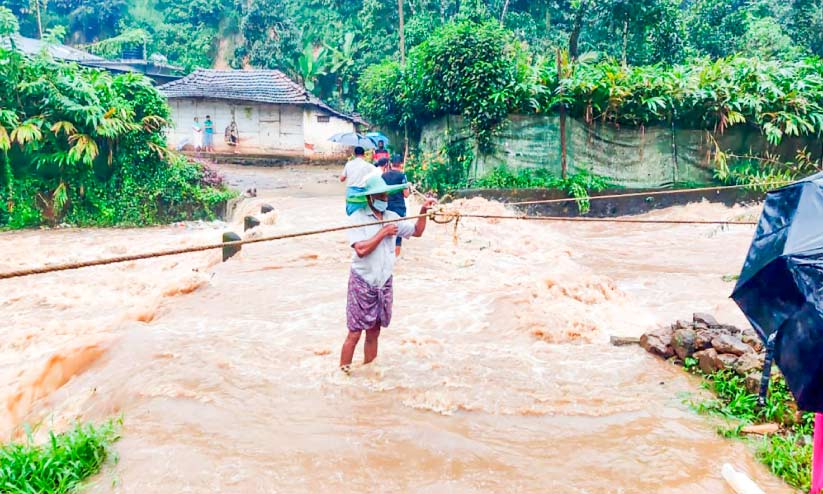 നാട്ടുകാർ കയർ കെട്ടി ആളുകളെ രക്ഷപ്പെടുത്തുന്നു