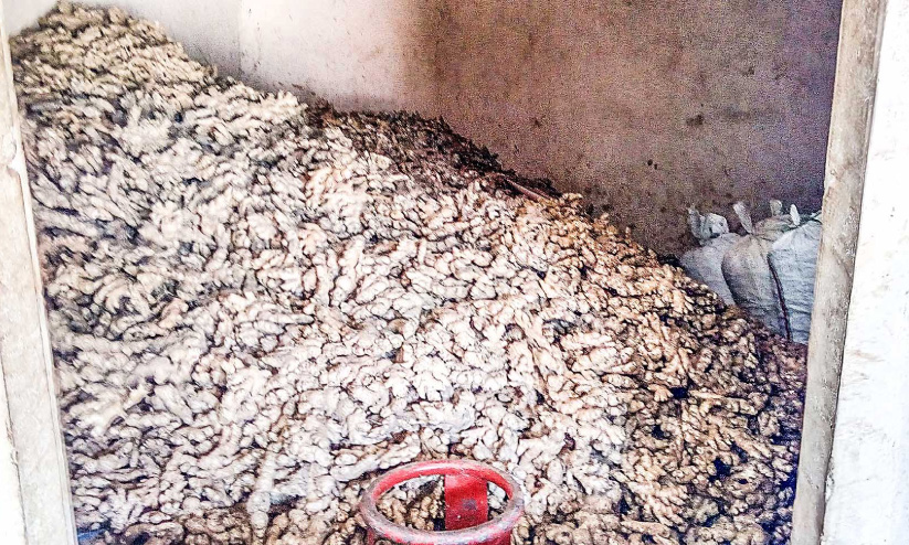 text_fieldsവില ഇടിവിനെത്തുടർന്ന് വിൽക്കാൻ കഴിയാതെ കൂട്ടിയിട്ടിരിക്കുന്ന പച്ച ഇഞ്ചി
