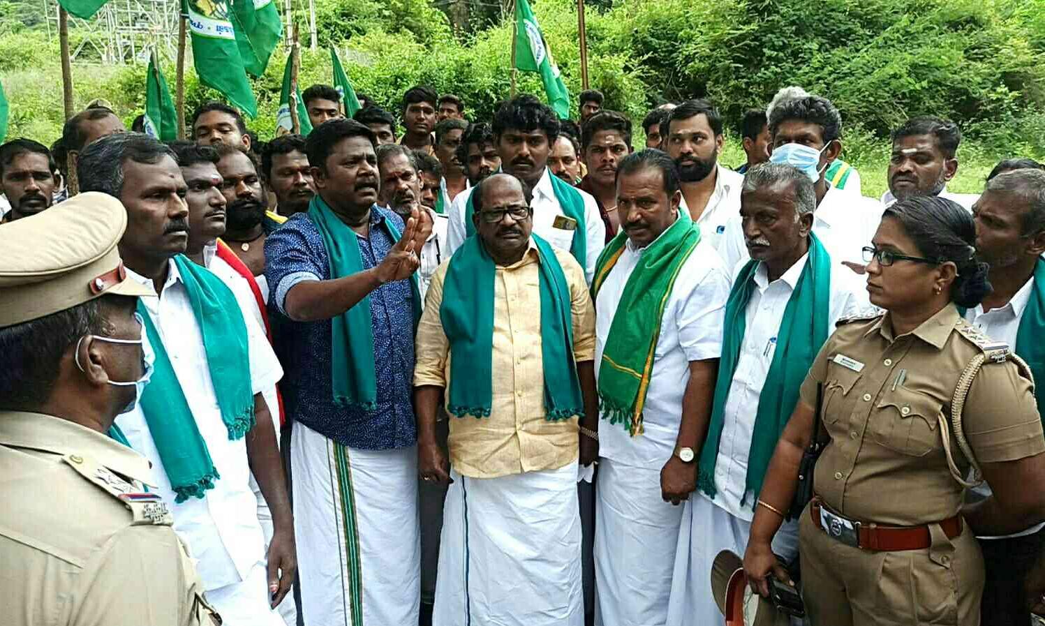 ഐക്യകർഷക സംഘം നേതാക്കളായ എസ്.ആർ. തേവർ, അൻവർ ബാലശിങ്കം എന്നിവരുടെ നേതൃത്വത്തിലാണ് സമരം നടന്നത്. ഗൂഡല്ലൂർ ഇൻസ്പെക്ടർ മുത്തുമണി, തഹസിൽദാർ അർജുൻ എന്നിവരുടെ നേതൃത്വത്തിൽ വൻ പൊലീസ് സംഘം സമരക്കാരെ തടയാൻ രംഗത്തെത്തിയിരുന്നു.