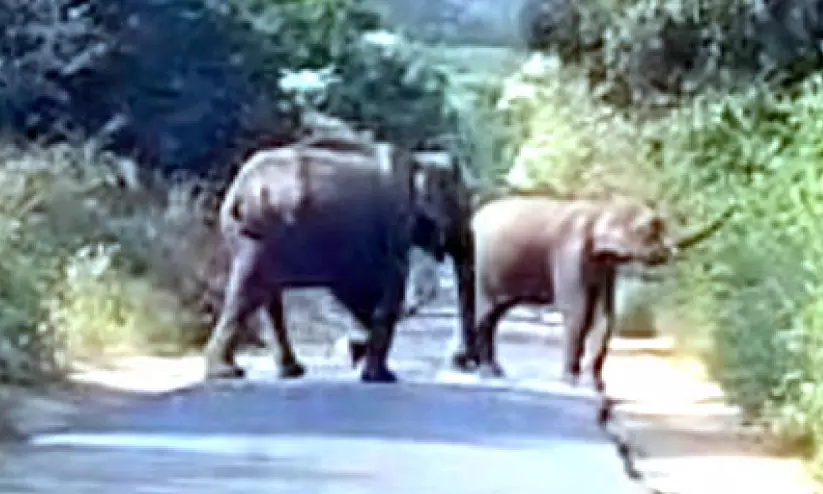 വേനൽ ചൂട്; കാട്ടാനകൾ പകൽസമയത്തും സംസ്ഥാന പാതയിൽ