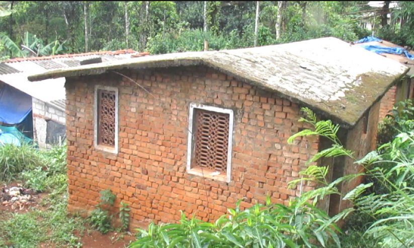 മേല്ക്കൂര കോണ്ക്രീറ്റാണെങ്കിലും നനയാതിരിക്കാന് മുകളില് പ്ലാസ്്റ്റിക് പടുത വലിച്ചുകെട്ടിയിരിക്കുകയാണ്. കനത്ത മഴയെത്തുടര്ന്ന് മൂന്ന് വീടുകള് മുമ്പ്്് തകര്ന്നിരുന്നു. കട്ടകള് സിമൻറ് വെച്ച് ഉറപ്പിക്കുന്നതിന് പകരം മണ്ണ് കുഴച്ച് തേച്ചുപിടിപ്പിച്ചിരിക്കുകയാണ്.