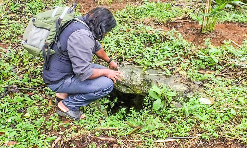 text_fieldsശാന്തനരുവിയുടെ തീരത്ത് കണ്ടെത്തിയ ഭൂഗര്ഭ കല്ലറയുടെ ഉള്വശം നെടുങ്കണ്ടം പുരാവസ്തു ചരിത്രസംരക്ഷണ സമിതി അംഗം റെയ്്സണ് പി. ജോസഫ് പരിശോധിക്കുന്നു