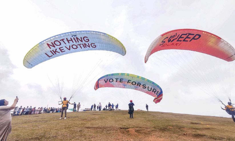 വോട്ട് ചെയ്യിപ്പിക്കാൻ പാരാഗ്ലൈഡിങ്ങും