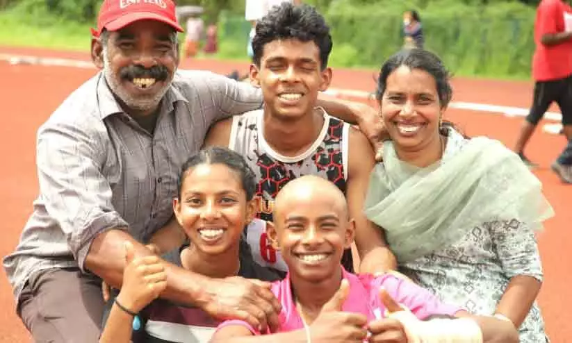 നെടുങ്കണ്ടം: കൂലിപ്പണി ചെയ്ത് കിട്ടുന്ന തുച്ചമായ വരുമാനത്തിൽ നല്ലൊരു ശതമാനം മക്കളുടെ വിദ്യാഭ്യാസത്തിനും കായികതാൽപര്യങ്ങൾക്കും വിനിയോഗിച്ച് പൂർണ പിന്തുണയുമായി മാതാപിതാക്കൾ എത്തിയതോടെ കായികരംഗത്ത് കുതിക്കുകയാണ് മൂന്ന് കുട്ടികൾ. സെറിൻ, സെബിൻ, സോബിൻ എന്നീ സഹോദരങ്ങളാണ് ജില്ല സ്കൂൾ കായികമേളകുടുംബകാര്യംയിൽ മിന്നുന്ന പ്രകടനം കാഴ്ചവെച്ചത്. ഓരോ മത്സര ട്രാക്കുകളിലും ഓടിനടന്ന് മാതാപിതാക്കൾ മക്കൾക്ക് പ്രോത്സാഹനം നൽകുന്നു.