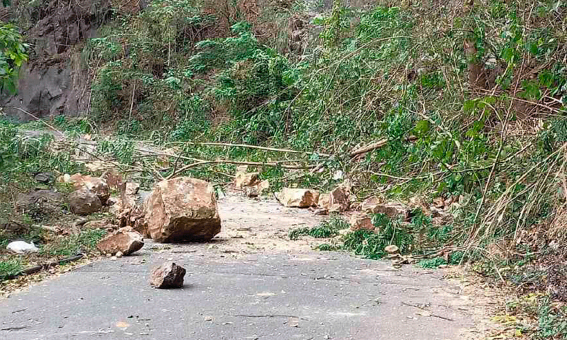 text_fieldsകല്ലും മണ്ണും മൂലമറ്റം-വാഗമൺ റോഡിലേക്ക് തള്ളിയനിലയിൽ