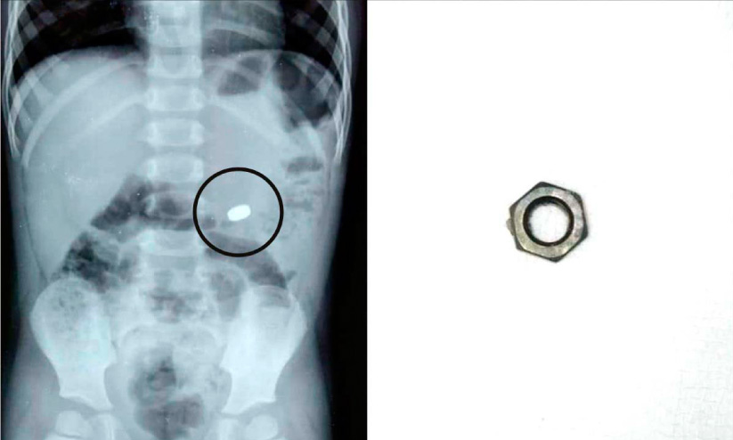 text_fields1. എക്സറേ ചിത്രം 2. വിഴുങ്ങിയ നട്ട്
