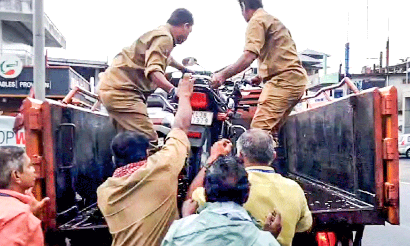 text_fieldsനഗരസഭയുടെ നേതൃത്വത്തിൽ റോഡിൽ വെച്ചിരിക്കുന്ന ഇരുചക്രവാഹനങ്ങൾ ഒഴിപ്പിക്കുന്നു
