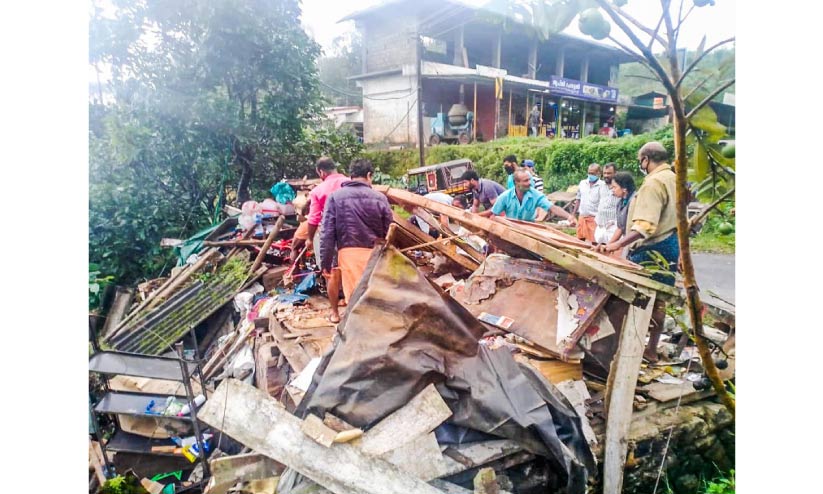 കുളമാവിൽ കടയും വീടും തകർന്നു; രണ്ടുപേർക്ക് പരിക്ക്
