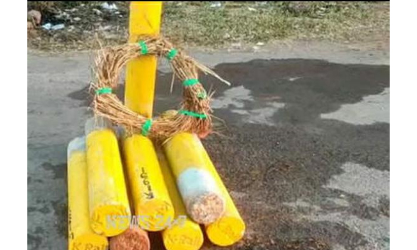 വീണ്ടും പ്രതിഷേധം: കെ-റെയിൽ കല്ലുകൾ പിഴുതെടുത്ത് കൂട്ടിയിട്ട് റീത്ത് വച്ചു