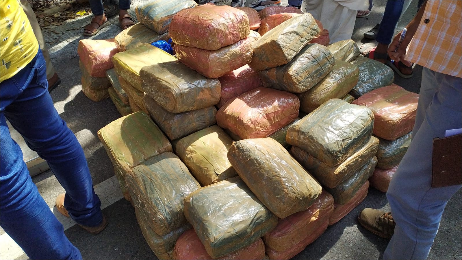 ആന്ധ്രയിൽ നിന്നും ഒമ്പത് ബാഗുകളിലായി 99 പാർസലായി പിക്കപ്പ് വാനിൽ ബാംഗ്ലൂരിൽ എത്തിച്ച് തുടർന്ന് ലോറിയിൽ കൊണ്ടുവരും വഴിയാണ് എക്സൈസ് സംഘം കൂട്ടുപുഴയിൽ വണ്ടി തടഞ്ഞത്.