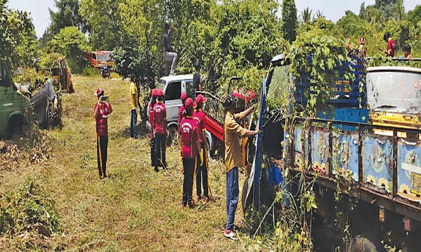 ഡംപിങ് യാർഡ് പ്രദേശത്തെ കാട് വെട്ടിത്തെളിക്കുന്നു