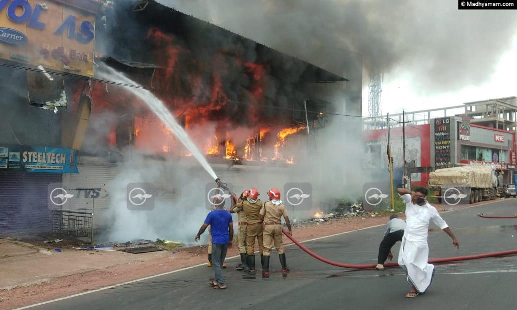 text_fieldsതാണയിൽ കെട്ടിടത്തിൽ പടർന്ന തീ അണക്കാനുള്ള ശ്രമം. ഫോേട്ടാ: പി. സന്ദീപ്