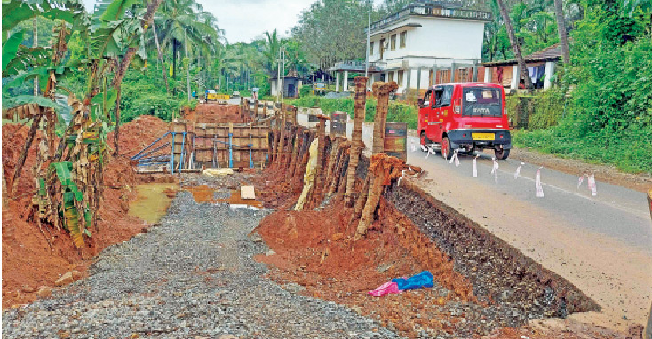 അടിഭാഗത്ത് വെള്ളം കെട്ടിനിൽക്കുന്നതിനാൽ തെങ്ങിൻതടികൾ നിരത്തി മണ്ണിട്ടുറപ്പിക്കുന്ന കോക്കനട്ട് പൈലിങ്ങും നടത്തി. യന്ത്രമുപയോഗിച്ച് മണ്ണ് നീക്കിയാണ് ഈ പ്രവൃത്തി നടത്തിയത്. ഇത് പൂർത്തിയായിട്ടില്ല. കഴിഞ്ഞ വർഷം ഇവിടെ ഭൂമി കുഴിച്ച് നടത്തിയ പരിശോധനയുടെ അടിസ്ഥാനത്തിലാണ് നിലവിൽ ശാസ്ത്രീയ അഭിവൃദ്ധിപ്പെടുത്തൽ നടത്തുന്നത്. ഇവിടെ മീറ്ററുകളോളം നീളത്തിൽ റോഡ് പിളർന്ന് പുഴ ഭാഗത്തേക്ക് തെന്നിമാറിയ അപകടക്കാഴ്ചയാണുണ്ടായത്. മൂന്ന് വർഷത്തോളമായി കാലവർഷം കനക്കുമ്പോൾ റോഡ് തകരുന്നതും പുഴയോരം ഇടിയുന്നതും പതിവാണ്. മലവെള്ളപ്പാച്ചിലിൽ മലയോര ഹൈവേയിൽ മുണ്ടാന്നൂരിനും തോണിക്കടവിനും ഇടയിലാണ് പുഴ റോഡിനെ കവരുന്നത്. എന്നിട്ടും അധികൃതർ ഈ ഭാഗം ശാസ്ത്രീയമായി ബലപ്പെടുത്താൻ തയാറായിരുന്നില്ല. വൻ അപകടക്കെണിയായതോടെയാണ് ഒടുവിൽ കണ്ണ് തുറന്നത്. റോഡ് ബലപ്പെടുത്തി പഴയ സ്ഥിതിയിലാക്കാൻ ഏറെ പണിയുണ്ട്.