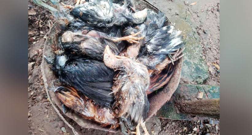 കോഴികളെ വീട്ടുടമ കൂട്ടിലടച്ച് കിടന്നതായിരുന്നു. നേരം പുലർന്നപ്പോൾ കൂടിന്നരികിൽ ഭക്ഷണം കൊടുക്കാനെത്തിയപ്പോഴാണ് കൂട്ടിലെ ഒരു അറയിലെ കോഴികൾ ഒന്നൊഴിയാതെ ചത്തതായി വീട്ടുടമ കാണുന്നത്. ഭക്ഷണത്തിലെ വിഷബാധയോ, വിഷപ്പാമ്പുകളുടെ വിഷം ചീറ്റലോ, കോഴി വസന്തരോഗമോ എന്നെല്ലാം വീട്ടുകാരും നാട്ടുകാരും സംശയിക്കുന്നു. അടുത്തുള്ള കോഴിക്കൂടുകളിലെ കോഴികൾക്ക് ഒന്നുമില്ലാതെ ഒരു കൂട്ടിലെ കോഴികളാണ് മുഴുവനും കൂട്ടത്തോടെ ചത്തത്.