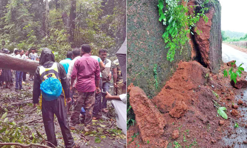 ഇരിട്ടി: ദിവസങ്ങളായി തുടരുന്ന കനത്ത മഴയിൽ മലയോരത്ത് പരക്കെ നാശം. കേരള-കർണാടക അതിർത്തി പാതയിൽ മരം വീണ് ഗതാഗതം നിലച്ചു. ഞായറാഴ്ച രാവിലെ 9.30 ഓടെ മാക്കൂട്ടം ചുരം പാതയിലാണ് സംഭവം. സമാന്തര റോഡില്ലാത്തതിനാൽ മണിക്കൂറുകളോളം വാഹനങ്ങൾ റോഡിൽ കുടുങ്ങി. അന്തർ സംസ്ഥാന പാതയിൽ മാക്കൂട്ടം ഫോറസ്റ്റ് ചെക്ക്പോസ്റ്റിൽനിന്നും രണ്ട് കിലോമീറ്റർ അകലെയാണ് കൂറ്റൻ മരം റോഡിലേക്ക് പതിച്ചത്.