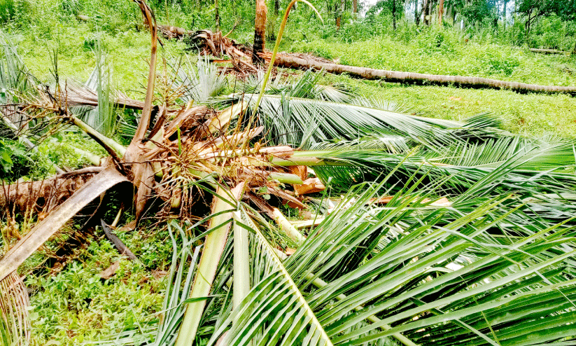 കേളകം: വൈവിധ്യവത്കരണത്തിലൂടെ ഫാമിനെ രക്ഷിക്കാനുള്ള മാർഗങ്ങൾ തുടരുമ്പോൾ മറുവശത്ത് കാട്ടാനക്കൂട്ടങ്ങൾ ഫാമിന്റെ പ്രധാന വരുമാന സ്രോതസ്സായ തെങ്ങുകൾ കുത്തിവീഴ്ത്തി നശിപ്പിക്കുന്നത് തുടരുന്നു. കഴിഞ്ഞ മൂന്ന് ദിവസത്തിനുള്ളിൽ ആറളം ഫാമിലെ അഞ്ചാം ബ്ലോക്കിൽ കാട്ടനക്കൂട്ടം കുത്തി വീഴ്ത്തിയത് 60ഓളം തെങ്ങുകൾ.