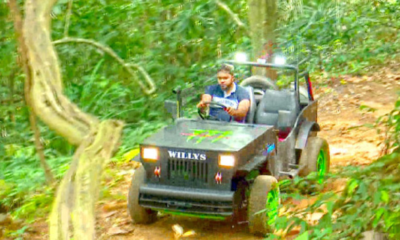 20 വർഷം പഴക്കമുള്ള കാറിെൻറ ഭാഗങ്ങളാണ് പ്രധാനമായും നിർമാണത്തിനായി ഉപയോഗിച്ചത്. ചെലവ് 40,000 രൂപ മാത്രം. ഒമാനിലെ 'ആദിപൂൾസ്' കമ്പനി ഉടമ ജിനേഷ് ഉൾപ്പെടെ നിരവധി പേരാണ് വാഹന നിർമാണത്തിന് താങ്ങായത്. രണ്ടുപേർക്ക് യാത്ര ചെയ്യാവുന്ന ജീപ്പിന് മണിക്കൂറിൽ 95 കിലോമീറ്റർ വരെ വേഗത കിട്ടും. കുന്നുകയറുന്നതിന് ഓട്ടോ ബ്രേക്ക് ലോക്ക്, 15 കിലോ മീറ്റർ ഇന്ധനക്ഷമത എന്നീ സവിശേഷതകളുള്ള വാഹനം 300 മുതൽ 400 മീറ്റർ അകലെ നിന്ന് ഡ്രൈവറില്ലാതെ അടുത്തേക്ക് ഓടിച്ച് കൊണ്ടുവരാനാകും.