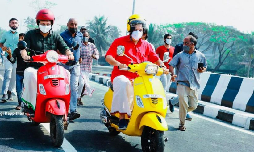 ചുവന്ന സ്കൂട്ടറിൽ മന്ത്രി, മഞ്ഞ സ്കൂട്ടറിൽ എം.എൽ.എ; കളർഫുളായി പാലം ഉദ്ഘാടനം