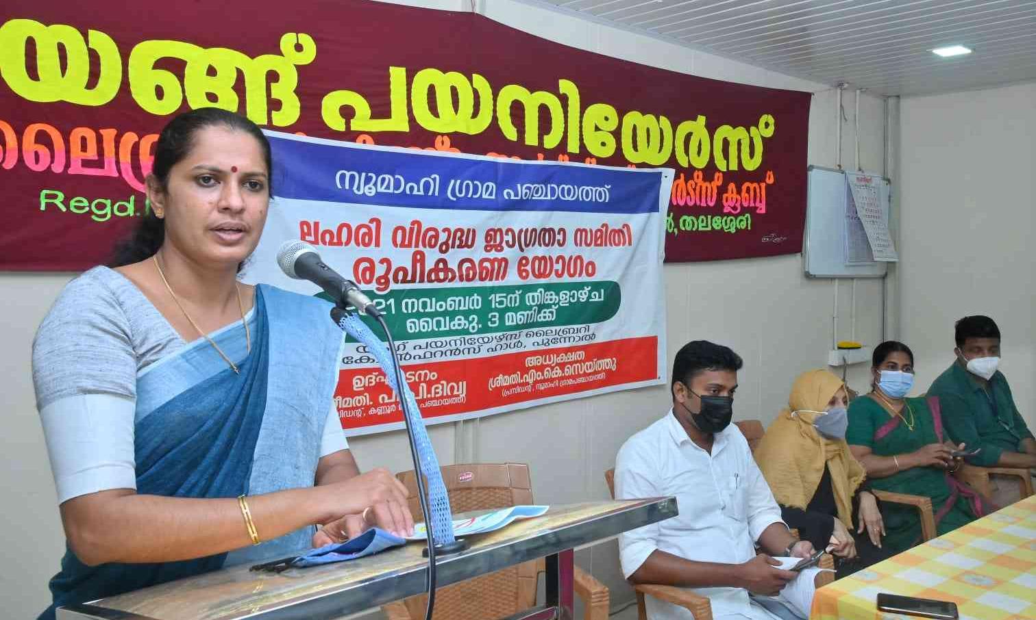 text_fieldsന്യൂമാഹിയിൽ ലഹരി വിരുദ്ധ ജാഗ്രതാ സമിതി ജില്ല പഞ്ചായത്ത് പ്രസിഡൻറ് പി.പി. ദിവ്യ ഉദ്ഘാടനം ചെയ്യുന്നു