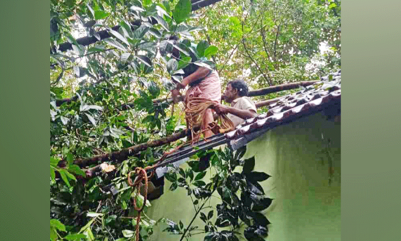 വീടിന് മുകളിൽ തെങ്ങ് വീണു