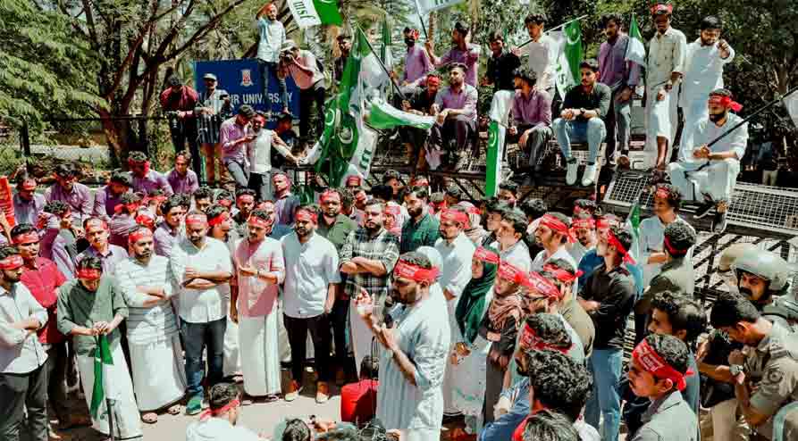 ജനറൽ സെക്രട്ടറി സി കെ നജാഫ് അധ്യക്ഷനായി. കണ്ണൂർ മുസ്ലിം ലീഗ് ജില്ല ജനറൽ സെക്രട്ടറി അഡ്വ. അബ്ദുൽ കരീം ചേലേരി മുഖ്യപ്രഭാഷണം നടത്തി. പഴയ ബസ് സ്റ്റാന്റ് നിന്ന് ആരംഭിച്ച മാർച്ച് യൂണിവേഴ്സിറ്റി കവാടത്തിൽ പോലീസ് ബാരിക്കേഡ് സ്ഥാപിച്ചു തടഞ്ഞു.
