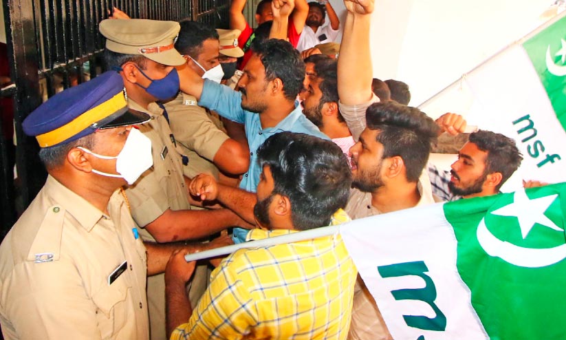 പ്രതിഷേധിച്ച് എം.എസ്.എഫ് പ്രവര്ത്തകര് സര്വ്കലാശാല ആസ്ഥാനത്തേക്ക് നടത്തിയ മാർച്ച്