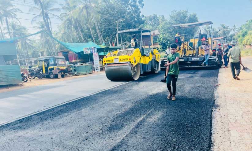 text_fieldsപാപ്പിനിശ്ശേരി-പഴയങ്ങാടി കവലയിൽ മെക്കാഡം ടാറിങ് നടത്തുന്നു