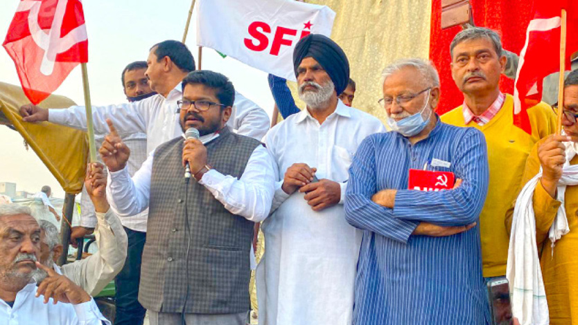 അഞ്ഞൂറോളം വരുന്ന കർഷകസംഘടനകളുടെ നേതൃത്വത്തിലുള്ള സമരത്തെ തുടക്കം മുതൽ തകർക്കാനുള്ള ഹീനമായ നീക്കമാണ് കേന്ദ്ര സർക്കാർ നടത്തിയത്. പ്രധാനമന്ത്രി മൻ കി ബാത്തിലൂടെ കോർപറേറ്റുകളുടെ മനസ്സിലുള്ള കാര്യമാണ് അവതരിപ്പിക്കുന്നത്. കർഷകർക്കുവേണ്ടിയാണ് ഈ നിയമമെന്ന് വിശദീകരിക്കുന്ന പ്രധാനമന്ത്രി, തങ്ങൾക്ക് ഈ നിയമം ആവശ്യമില്ലെന്ന് കർഷകർ ഒറ്റക്കെട്ടായി ഒരുമിച്ചു നിന്ന് വിളിച്ച് പറയുന്നത് കാണാതെ കർഷകരിൽ അടിച്ചേൽപ്പിക്കുന്നത് കോർപറേറ്റ് ദാസ്യം കൊണ്ടാണെന്നും അദ്ദേഹം പറഞ്ഞു.