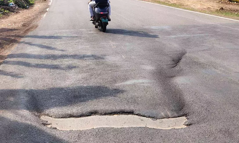 മൂന്നുതവണ കുഴിയടച്ചിട്ടും റോഡ് തകർന്നു; വാഹനങ്ങൾക്ക് അപകടക്കെണി