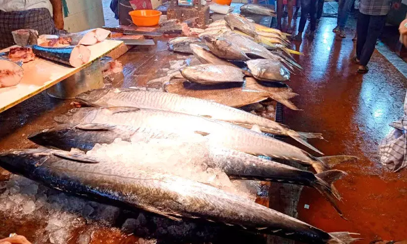 ട്രോളിങ് നിരോധനം നിലവിലുള്ളതിനാൽ മാർക്കറ്റിൽ മത്സ്യലഭ്യത കുറവാണ്.