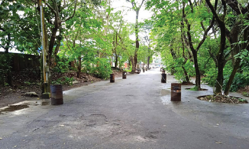 ഇവിടെ റെയിൽവേ ഭൂമിയിലുള്ള പോക്കറ്റ് റോഡിെൻറ ഇരുവശങ്ങളിലും ജനത്തിെൻറ നികുതിപ്പണം ഉപയോഗിച്ച് മനോഹരമായി കോൺക്രീറ്റ് ചെയ്തിട്ടുണ്ട്. ഇരുചക്രവാഹനം മുതൽ കാറുകൾ വരെ നിർത്തിയിടാൻ ആവശ്യത്തിന് സൗകര്യവുമുണ്ട്. എന്നാൽ, യാത്രക്കാരുടെ വാഹനങ്ങൾക്ക് ഇവിടേക്ക് പ്രവേശനമില്ല. കടക്കേണ്ട വഴിയിൽ വലിയ വീപ്പകൾ സ്ഥാപിച്ച് കമ്പികൾ ചേർത്ത് കെട്ടി തടസ്സപ്പെടുത്തിയ നിലയിലാണുള്ളത്. നോ എൻട്രി ബോർഡും സ്ഥാപിച്ചിട്ടുണ്ട്. റെയിൽവേ അധികാരികൾ അറിയാതെയാണ് ഈ നടപടിയെന്ന് വിവരമുണ്ട്.