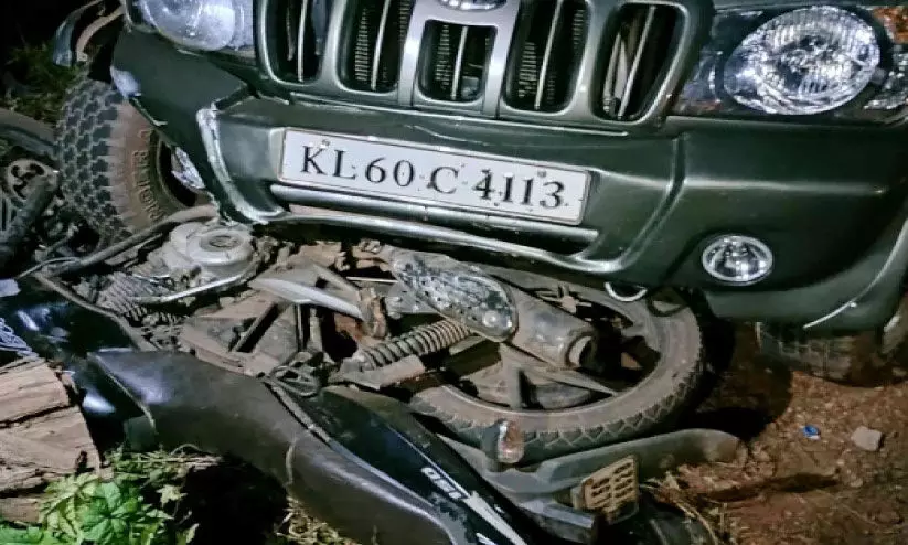 അപകടത്തിൽപ്പെട്ട ബൊലേറോ ജീപ്പും ബൈക്കും