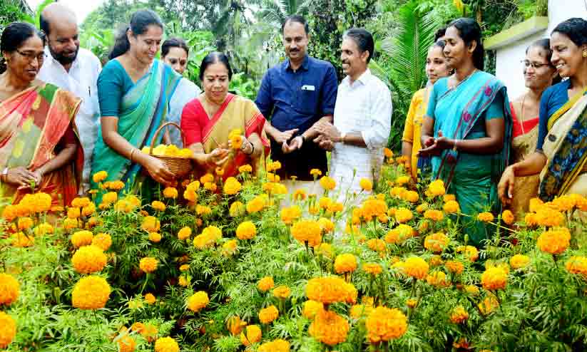 ഓണക്കാലത്ത് അയൽസംസ്ഥാനത്തുനിന്നുള്ള പൂക്കളെ ആശ്രയിക്കുന്നതിനുപകരം ജില്ലയിൽതന്നെ പൂകൃഷി നടത്തി ആവശ്യമായ പൂക്കൾ ഉൽപാദിപ്പിക്കാൻ അഞ്ചു വർഷമായി ജില്ല പഞ്ചായത്ത് പദ്ധതി നടപ്പാക്കുന്നുണ്ട്. ഇത്തവണ ആദ്യമായാണ് വിളവെടുപ്പ് ഉഷാറായത്. ഇത്തവണ 1.37 ലക്ഷം ചെണ്ടുമല്ലി തൈകളാണ് വിതരണം ചെയ്തത്. ഒരു ചെടിയിൽനിന്ന് ശരാശരി ഒന്നര കിലോ പൂക്കൾ ലഭിക്കും. ആകെ 200 ടൺ പൂക്കൾ ലഭിക്കുമെന്നാണ് പ്രതീക്ഷ. പത്തു ലക്ഷം രൂപ ചെലവിൽ ജില്ലയിലെ വിവിധ പഞ്ചായത്തുകളിലായി 50 ഹെക്ടർ സ്ഥലത്താണ് പൂകൃഷി ചെയ്തത്. കാർഷിക ഗ്രൂപ്പുകൾക്കും ജില്ലയിലെ മികച്ച കർഷകർക്കുമാണ് തൈകൾ കൈമാറിയത്. കഴിഞ്ഞ വർഷങ്ങളിൽ ജില്ല പഞ്ചായത്ത് ഫാമിൽനിന്ന് തൈകൾ ലഭിക്കാൻ വൈകിയതിനാൽ തിരുവോണവും കഴിഞ്ഞാണ് പൂക്കൾ വിരിഞ്ഞത്.