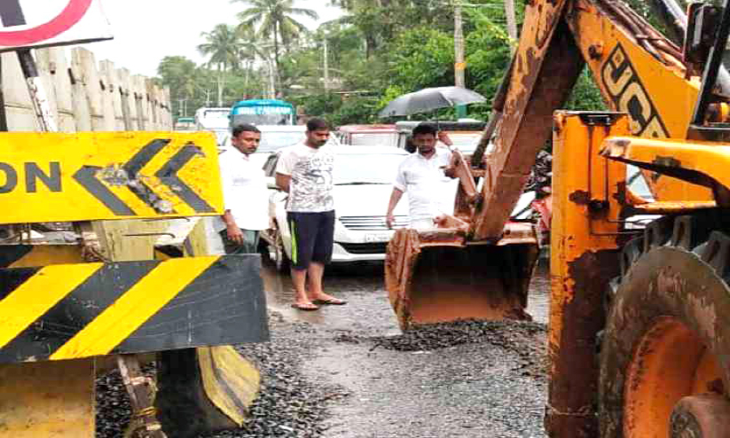 നാട്ടുകാർ കുഴിയടച്ചു; ദേശീയ പാതയിൽ ഗതാഗതം പുനഃസ്ഥാപിച്ചു