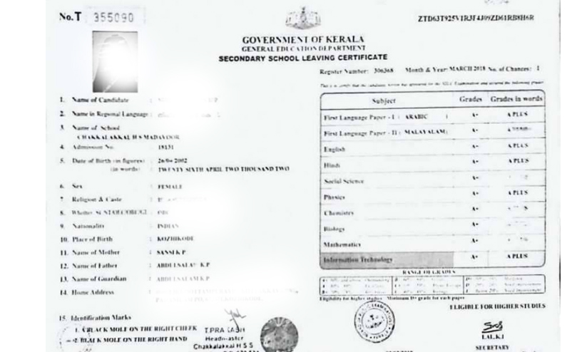 എസ്.എസ്.എൽ.സി ബുക്കിലെ വിവരങ്ങൾ മാഞ്ഞു