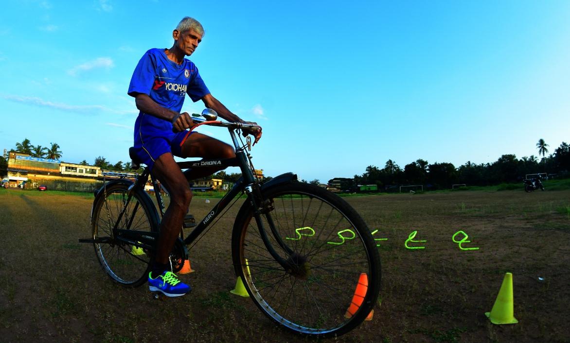 ബാലൻ പാലായി കാലിക്കടവ് മൈതാനിയിൽ പരിശീലനം നടത്തുന്നു