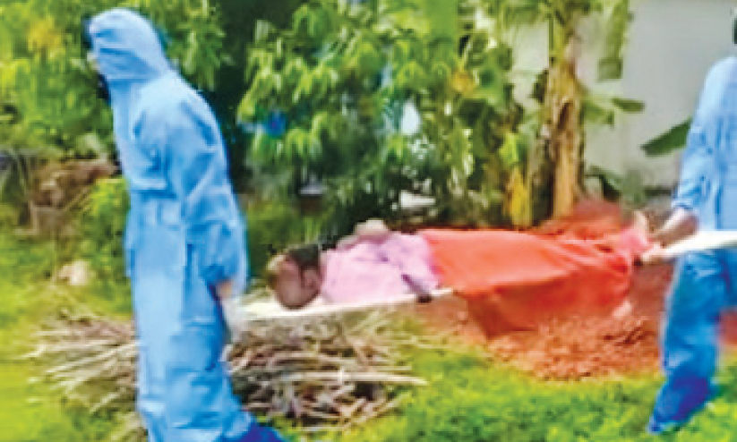 കോവിഡ് ബാധിച്ച വയോധികനെ ആശുപത്രിയിലേക്ക് മാറ്റുന്നു