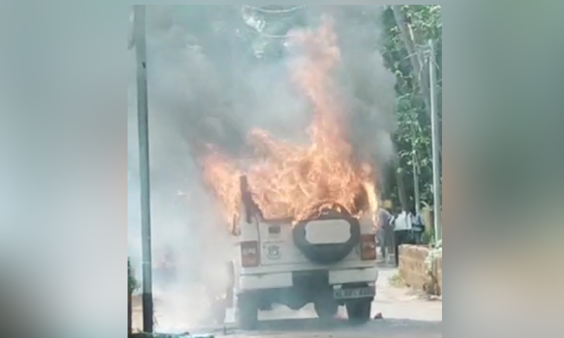 ഓട്ടത്തിനിടെ സ്കൂളിന്റെ ജീപ്പ് കത്തിനശിച്ചു