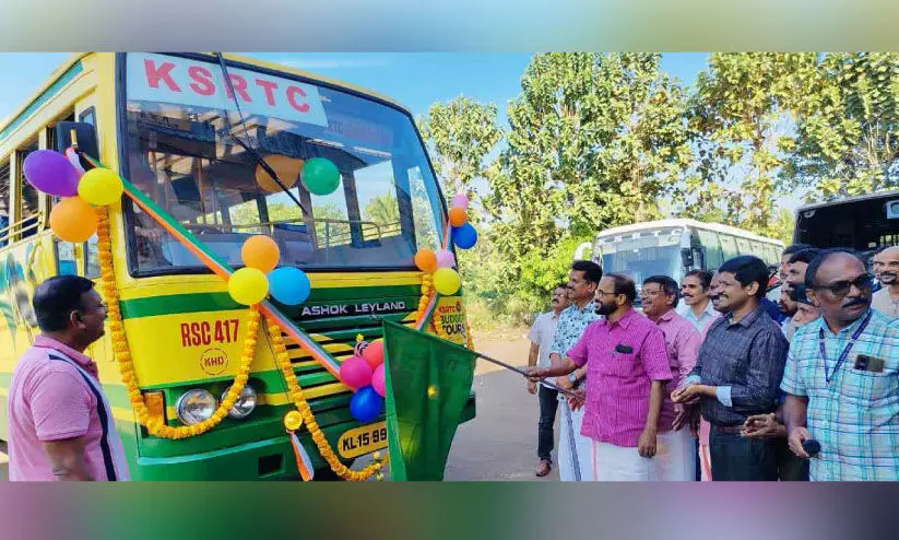 കാഞ്ഞങ്ങാട്: ആനവണ്ടി കളറായി. കെ.എസ്.ആർ.ടി.സി ബജറ്റ് ടൂറിസത്തിന്റെ ഭാഗമായി ടൂറിസം ആവശ്യത്തിന് കാഞ്ഞങ്ങാട് ഡിപ്പോക്ക് ബസ് അനുവദിച്ചു. ആദ്യ ബസിന്റെ ഫ്ലാഗ് ഓഫ് കാഞ്ഞങ്ങാട് നഗരസഭ ചെയർമാൻ വി.വി. രമേശൻ നിർവഹിച്ചു.