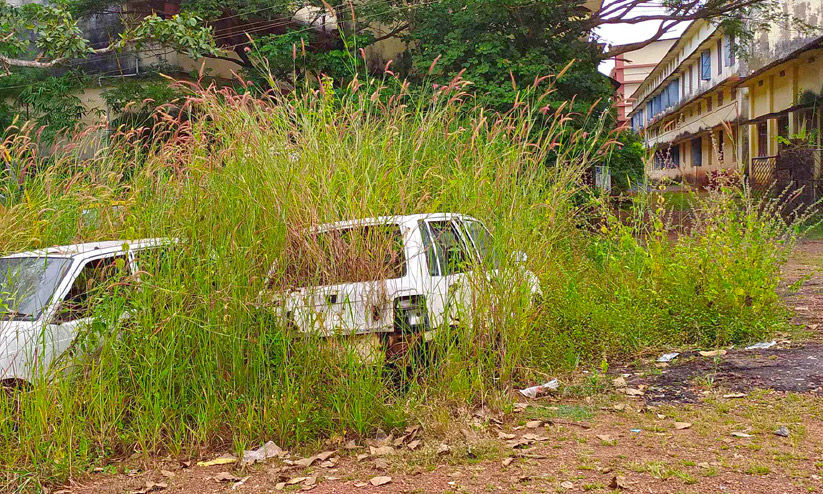 ആരും കാണുന്നില്ലേ ഇൗ സ്കൂൾ പരിസരം?; സ്കൂൾ മതിലിനോട് ചേർന്ന് കസ്റ്റഡി വാഹനങ്ങളും പിടിച്ചെടുത്ത തോണികളും