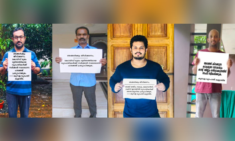 വീട്ടുപടിക്കൽ പ്ലക്കാർഡ് ഉയർത്തി വ്യാപാരികളുടെ സമരം